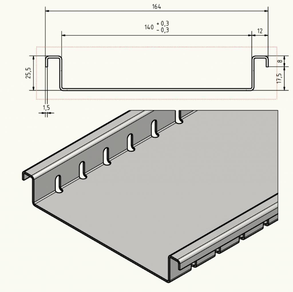 Die Produktion der Rinnen erfolgt aus hochwertigem 1,5mm starkem Aluminium.