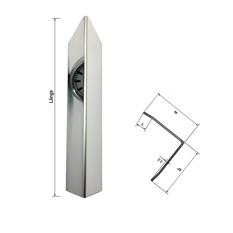 Hoekbeschermer modern met 3-voudige randen, gemaakt van roestvrij staal, spiegelafwerking 2R (IIID)